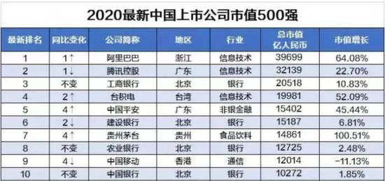 根据Wind最新发布2020年“中国上市企业市值500强”榜单可以发现,蚂蚁集团上市后,其高达2.1万亿的市值,将仅次于第二名的腾讯,一举超过四大行工(2.05万亿)建(1.5万亿)农(1.27万亿)中(1.02万亿)。