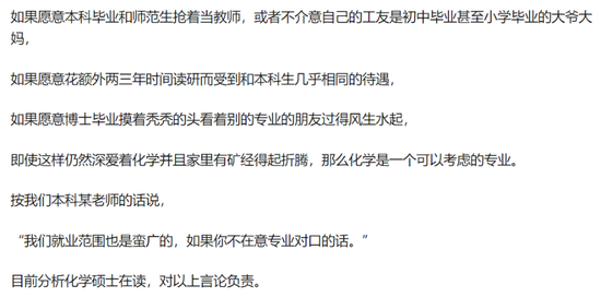 知乎网友就曾神总结过这几个专业“毕业后不当老师只能去当公务员”。收入倒数前10的专业中,仅有2个非文学类专业。DT君也看到了天坑中的神坑——化学专业。关于化学专业的前景,知乎网友@PilesA给出了这样的答案。
