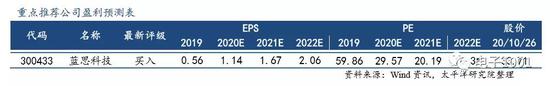 推荐标的:蓝思科技。从上述讨论中易见,蓝思是A股超瓷晶盖板领域唯一的核心受益标的,在当下智能终端同质化竞争激烈的背景下,各家品牌厂商为了突出自身产品差异性,在外观表现方面可谓做足了功夫,我们一直强调,外观件制造工艺难度的不断提升,进化节奏的加速,都将促使行业头部利润更多地向技术与产能储备深厚的龙头企业集中,看好蓝思在此背景下的持续成长,预计2020-2022年分别实现净利润50.02亿、73.18亿和90.24亿元,当前股价对应PE 29.57、20.19和16.36倍,维持买入评级。