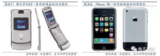 玻璃在手机端的最初应用可以追溯到功能机时代,2004年,摩托罗拉在其高端手机V3中首次应用玻璃屏,但彼时,成本高、易碎等缺点成为了玻璃在功能机中渗透的阻力,塑料仍是盖板的主流材质。直至2007年初代iPhone问世,屏幕的用途不再局限于显示,触控替代键盘成为手机最为主流的信息输入途径,盖板成为与使用者接触最频繁、且需要长时间被按压、点击的零部件,硬度因而成为了盖板材质选择时的重要考量指标之一,玻璃凭借在硬度、抗划伤性能等方面的相对优势,成为智能手机、平板电脑等消费电子产品防护盖板的主流材质。
