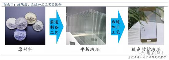 玻璃的制备工艺可以分为前、后两道,其中前道制作工艺是将原材料加工生产成玻璃坯材,这一环节注重玻璃透光率、强度、硬度、弹性模量和耐磨性等本征属性的强化,当前主要由美国康宁、日本旭硝子、德国肖特和日本NEG等海外企业主导,后道加工工艺则是根据终端品牌厂商的诉求,将玻璃毛坯加工成特定尺寸、形状、色彩的产品,该环节的主要目的是加强玻璃外观件的视觉美观程度,在该领域,以蓝思科技为代表的本土企业已抢过行业话语权。