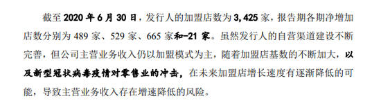周六福也在招股书提示了加盟模式的风险,对加盟模式的过度依赖可能带来一定的经营风险,若发生加盟商大规模地自主撤店停止经 营或转换品牌、无法续约店铺租赁合同或联营合同等情形,而公司又无法对渠道 的类型布局进行及时、有效的调整,则产品销售将面临增长放缓甚至下降的风险, 公司的经营发展也会受到不利影响。
