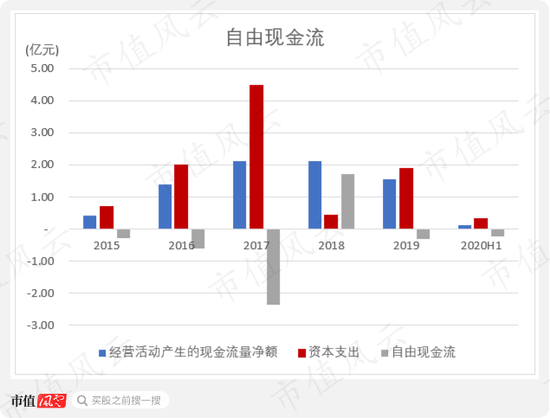 近五年,由于持续进行PI膜及深加工项目的建设和认证,除2018年外,公司的自由现金流均为负。