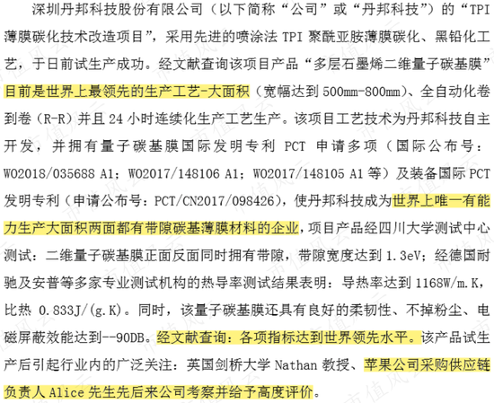 (丹邦科技在年报中对量子碳化合物厚膜的描述)
