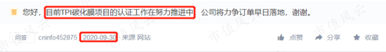 (2020年9月末,丹邦科技董秘关于TPI进展的回复,来源:深交所互动易平台)