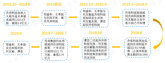 其中,丹侬科技的减持是以邹盛和、王李懿出走上市公司并取得丹侬科技控制权的期间作为起点。