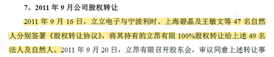 第一步,立昂微脱离立立电子。2011年9月,以王敏文为主的47名自然人接手了立立电子持有的立昂微100%股权。由此,王老板跨过立立电子成为立昂微最直接的实控人。