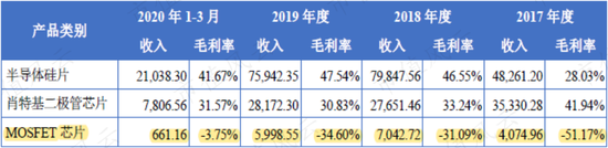 公司的半导体分立器件芯片业务的产品之一MOSFET芯片,仍处于亏损中,而另一主要产品肖特基二极管芯片,毛利率也发生了明显下降。