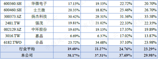 在这些可比公司中,立昂微的产品毛利率明显高于其他三家公司。2017-2019年期间,立昂微的毛利率水平均高于其他七家可比公司的平均毛利率水平。