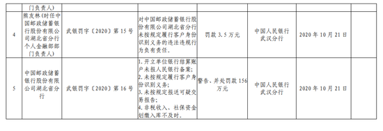 邮储银行湖北省分行被罚156万:未按规定报送可疑交易报告