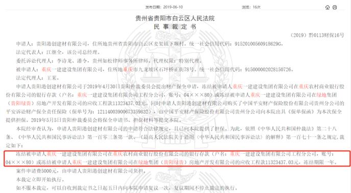 公开资料显示,该项目初始资金主要来源于股东借款,2017年8月,股东北京紫宸与贵铝华颐曾分别向贵阳绿贵提供借款4764.06万元及2382.03万元。另据中国裁判文书网,该项目涉及项目开发商拖欠广告费用的法律诉讼就有三起。项目施工方重庆一建曾于2019年5月被法院冻结银行存款或在贵阳绿贵的逾1100万元应收工程款。