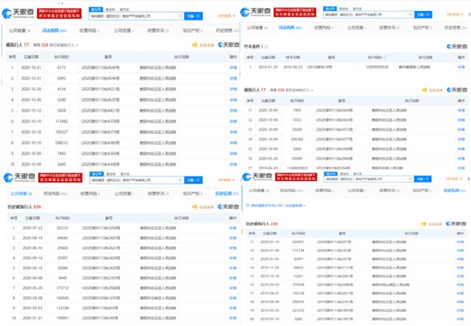 值得一提的是,贵阳白云成立于2011年,至今共243次被法院列为被执行人,仅今年就有39次,年内累计执行标的342.51万元。公司2019年6月曾因房屋拆迁安置补偿问题被贵阳市中级人民法院判决执行标的1.1亿元。