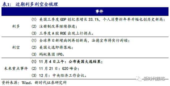 (3)策略判断:当下是风险小收益大的布局期。对A股市场来说,利率上行、IPO增加、美国大选等风险一直压制着市场,下周大部分利空即将落地,之后股市将会迎来利空落地后的回升期。期间除了疫情之外,几乎所有的利空都会阶段性告一段落。考虑到疫情已经是第三次担心了,这一次对股市和经济的冲击都将比之前小很多,我们认为国内经济已经进入的企业信心恢复后的库存周期,这一趋势不会轻易改变。展望未来一个季度,股市往上的空间和时间将会远大于下行的风险。