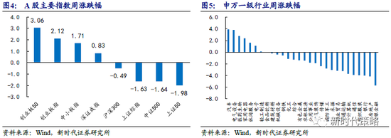 上周A股走势分化,其中创业板50(3.06%)、创业板指(2.12%)和中小板指(1.71%)领涨,上证50(-1.98%)、中证500(-1.64%)和上证综指(-1.63%)领跌。申万一级行业中,汽车(3.91%)、电气设备(3.81%)和医药生物(2.79%)领涨,非银金融(-5.75%)、房地产(-4.19%)和银行(-4.05%)领跌。概念股中,打板指数(4.94%)、能源互联网指数(4.19%)和共享汽车指数(2.75%)领涨,智能IC卡指数(-7.89%)、电子政务(-6.94%)和移动支付指数(-6.89%)领跌。