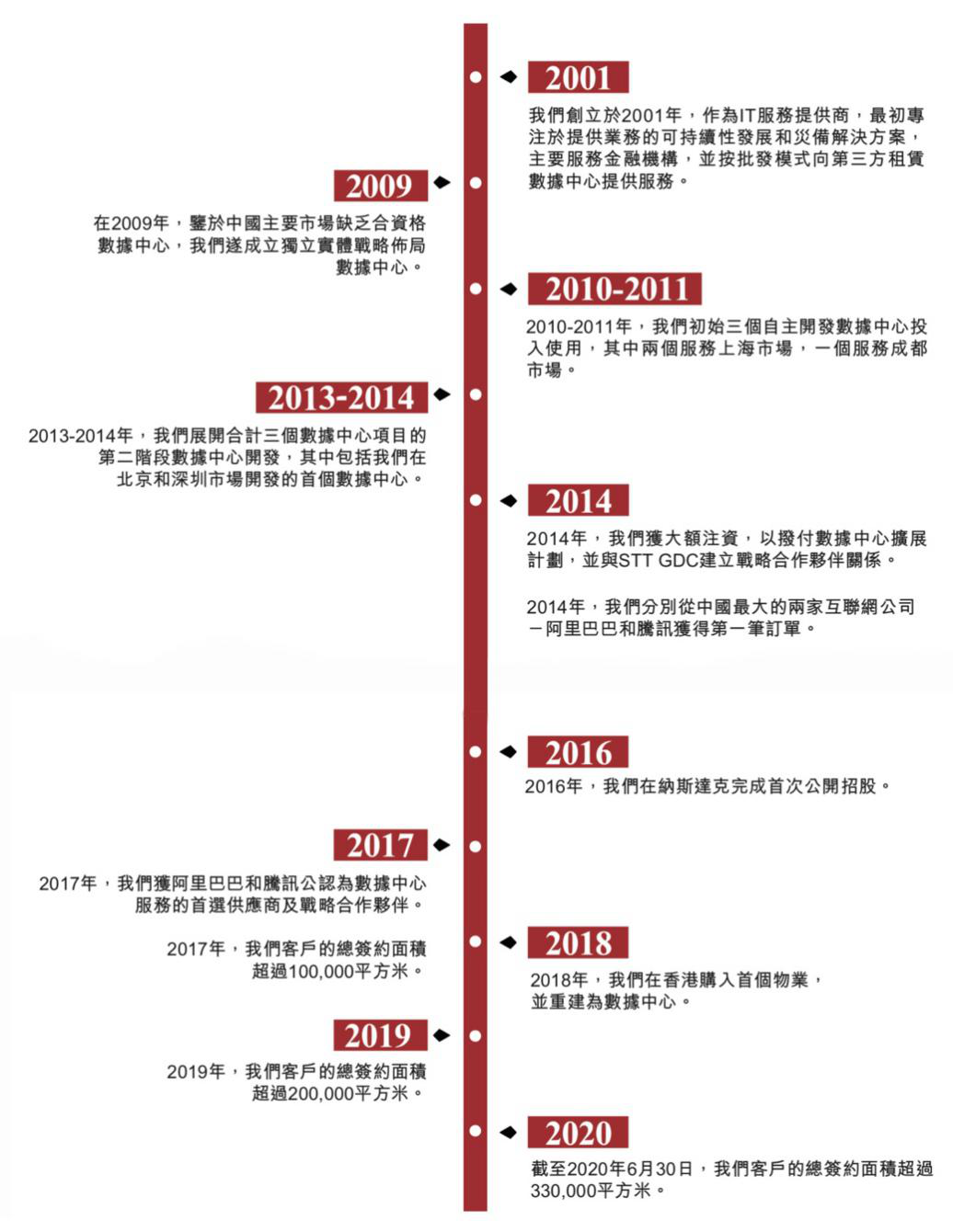 万国数据里程碑(数据来源:万国数据招股说明书)