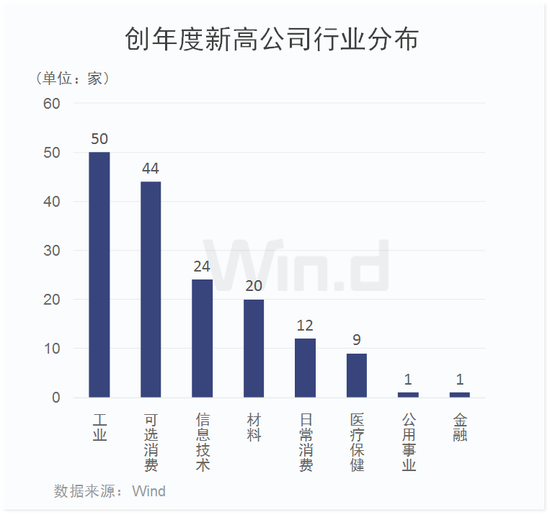 近几日虽然市场波动较大,但仍有部分公司逆市上涨。Wind统计显示,有161家公司近3日最高股价创今年以来新高。从相关公司行业分布来看,工业板块最多,有50家;可选消费板块紧随其后,有44家;信息技术、材料板块均有超过20家公司。可见,工业和消费类公司成为牛股聚集地。(剔除10月以来上市新股)