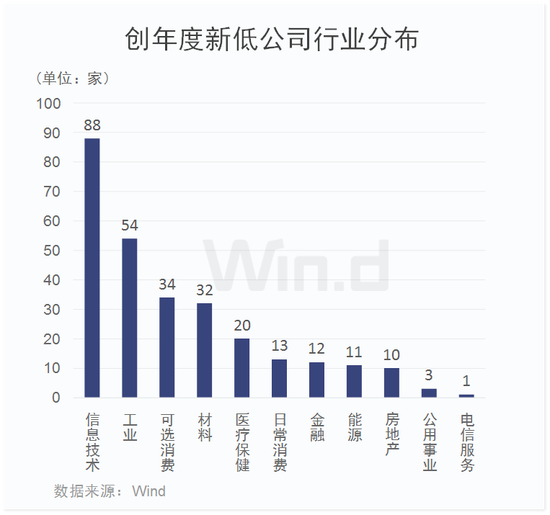 虽然有100多家公司股价创年内新高,但创年内新低的公司数量则更多。Wind统计显示,有278家公司近3日最低股价创今年以来新低。从相关公司行业分布来看,信息技术最多,有88家;工业板块紧随其后,有54家。近期市场大幅波动,科技类个股成为杀跌主力。(剔除今年以来上市新股)
