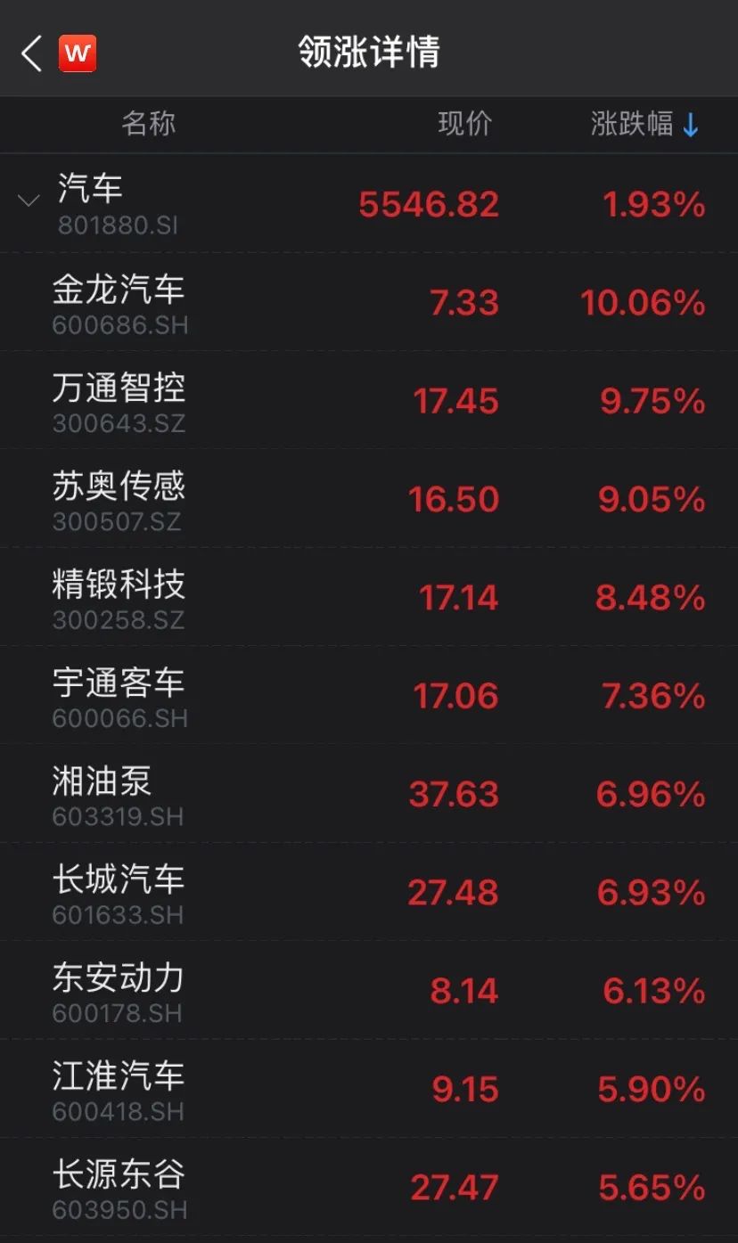 除了家电板块,汽车板块是A股市场早盘另一大亮点。
