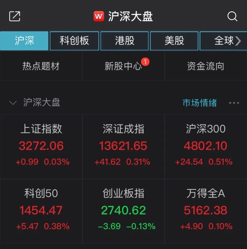 据Wind数据,截至午间收盘,上证指数、深证成指分别涨0.03%、0.31%,创业板指跌0.13%。