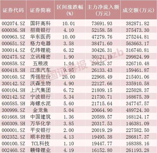 从个股情况来看,今日国轩高科、招商银行、华东医药主力资金净流入金额居前,分别净流入7.37亿元、5.22亿元、4.73亿元。