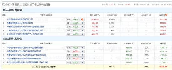 11月4日中金公司龙虎榜