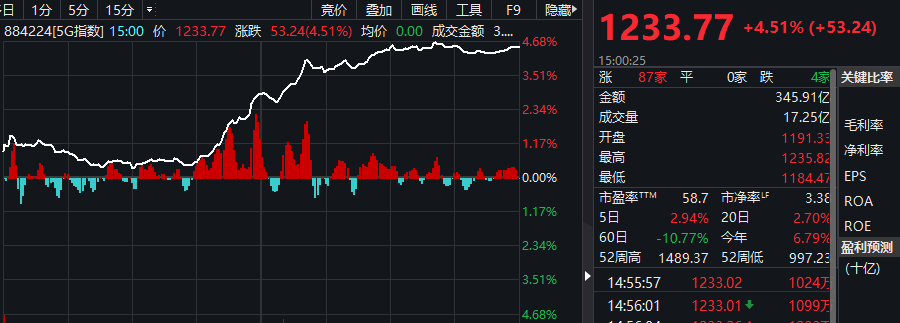 比较让人惊喜的是5G板块。沉寂了好长时间的5G今天突然爆发,这似乎在预期美国大选的结果和随后的政策选择。中兴通讯午后封板提振5G板块,烽火通信、东方通信等多股跟随涨停。5G指数大涨4.51%。