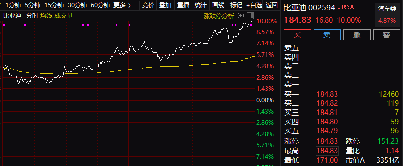 盘面上,汽车、白酒、5G爆发。比亚迪涨停再创新高,总市值首次突破5000亿元。宁德时代涨5%同创新高。新宙邦涨超16%,天赐材料涨停,亿纬锂能涨超7%。动力电池指数涨7.43%,锂电池电解液指数涨7.45%,锂矿指数涨近6%,锂电池指数涨5%。