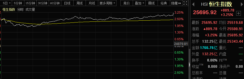 港股的表现实际上更加“刺激”。恒指在A股收盘之后继续上涨,恒指收涨3.25%,恒生科技指数大涨5.45%。科技、汽车、内房股领涨大市,中兴通讯涨近19%,腾讯、美团、京东股价创新高,阿里巴巴涨超6%。昨天晚上,美股市场的中概股表现也是十分给力。隔夜A50期指更是涨下历史新高。