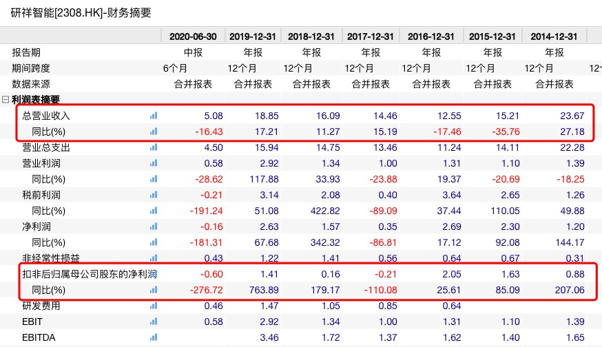 今年8月份,研祥智能发布截至2020年6月30日止六个月的财务报告,中期业绩盈转亏。数据显示,集团录得未经审核收入约人民币4.03亿元,较去年同期减少约21.5%,主要原因为计算机组件销售减少所致。