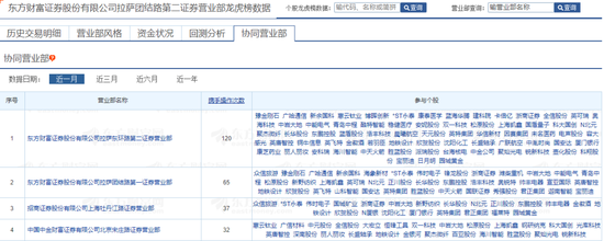 同时,前十名中,华鑫证券上海分公司排名第三,华鑫证券有两家分公司上榜,华鑫证券深圳分公司跳跃1552个位次,排名第六位。东方财富证券旗下拉萨地区有3家营业部跻身前十。