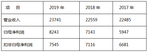 2017年、2018年、2019年,公司营业收入分别为2.25亿元、2.26亿元2.37亿元,扣非归母净利润分别为6681万元、7116万元、7545万元。