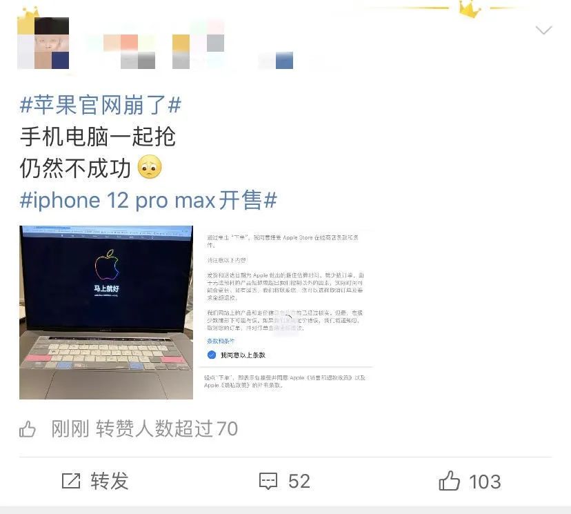 10月16日,苹果官网才刚刚崩过一次。当日晚间,苹果官网和多个电商平台开启iPhone 12系列预售。据大批网友反映,苹果官网因预售过于火爆出现卡顿,甚至一度崩溃了。