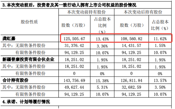 本次变动后,龚虹嘉仍持有海康威视10.86亿股,占总股本的比例为11.62%,仍然为海康威视的第二大股东。同时,其夫人陈春梅持股80%的新疆普康投资有限合伙企业持有海康威视1.83亿股。若按照最新收盘价,两人合计持有海康市值高达623亿元。
