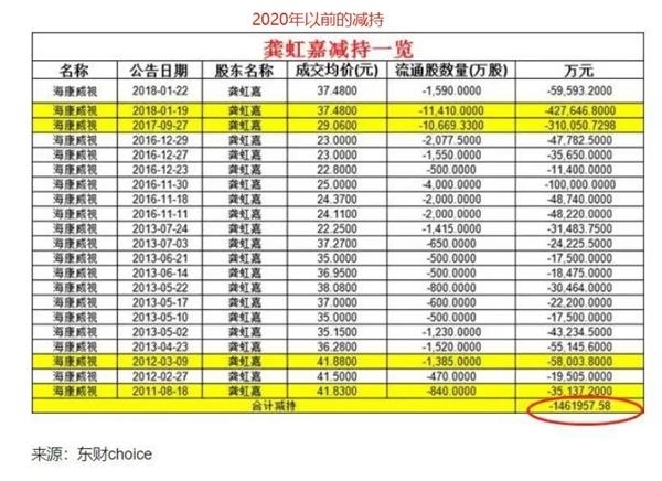 据中国基金报报道,在今年减持之前,龚虹嘉上一次减持是在2018年1月份,减持正是在海康威视的股价高位。