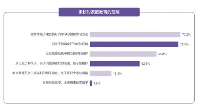 在疫情之后,“家校共育”的理念已成为家长们的共识。83%家长认为家庭教育与学校教育相辅相成,缺一不可。绝大多数家长已意识到家庭教育对孩子积极正面的影响,愿意自我改变。