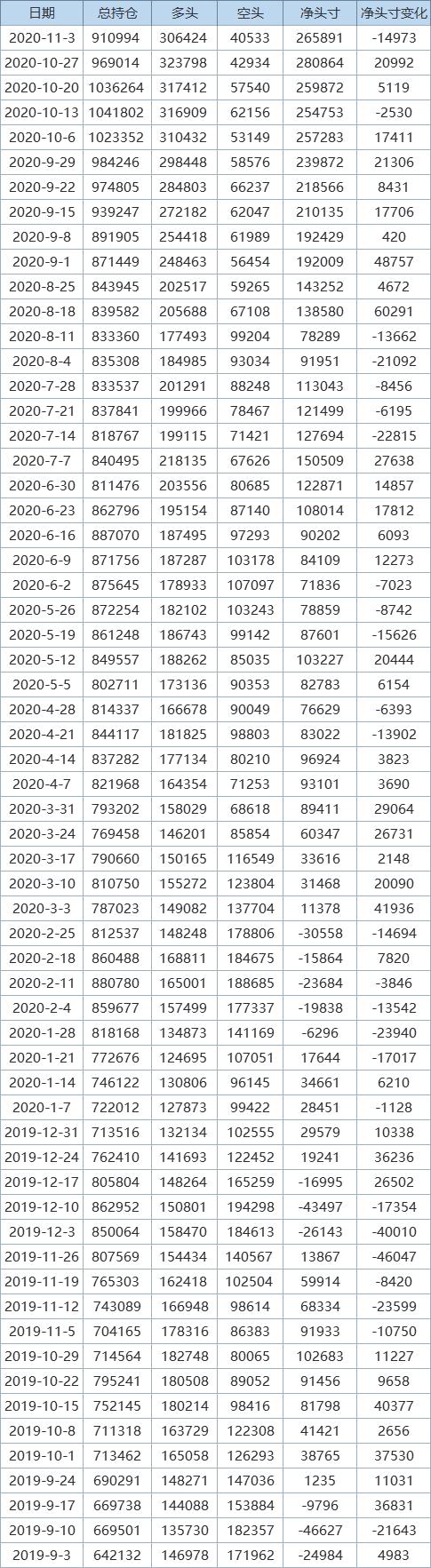 以下为CFTC公布的2019/20年度以来CBOT大豆期货基金持仓净头寸变化一览: