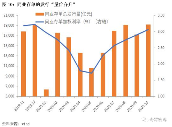 3)从三季度以来,同业存单发行一直处于量价齐升的状态;