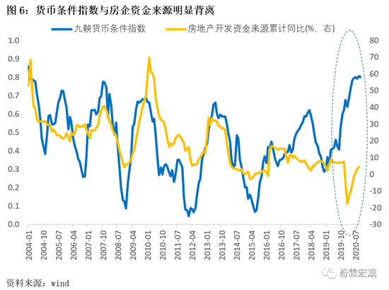 目前来看,应该是没有跑到地产去的,过去我们能发现中国的金融条件指数与房地产融资大体呈正相关关系,但今年以来,尤其是三条红线监管新规以来,二者出现了非常明显的背离。