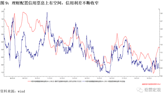 2)近期信用债配置需求还可以,信用债跌得比利率债要少很多,因为理财有票息压力,配置需求是刚性的,信用利差收窄;