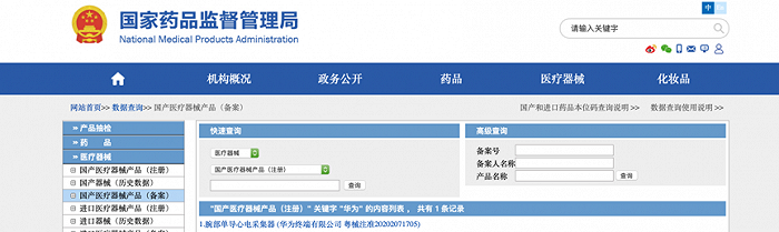 华为首款医疗器械产品浮出水面。