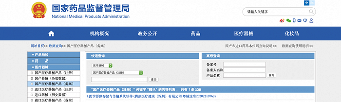 就在华为拿到注册证的同时,另一家互联网巨头——腾讯也通过腾讯医疗健康(深圳)有限公司成功拿到二类医疗器械注册证。