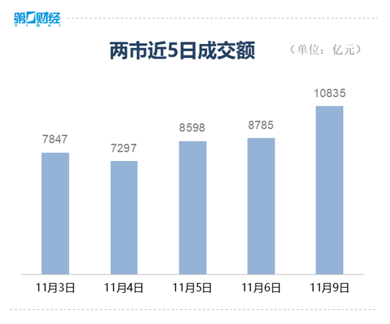 11月9日,A股三大股指高开高走,两市成交额突破万亿元。截至收盘,沪指涨1.86%,报收3373点;深成指涨2.19%,报收14141点;创业板指涨2.96%,报收2814点。盘面上,半导体、航运概念、通信设备、证券、国防军工等板块涨幅居前。个股方面,深深房A涨停,晶澳科技一字跌停,公司实控人被立案调查。