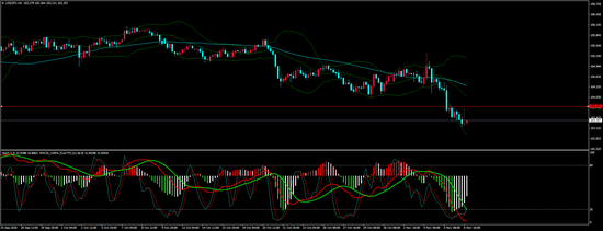 4H:美日上周五亚市开盘后继续走低,纽约盘时段扩大跌幅,从4H来看,短期均线略有拐头,MACD零轴下方死叉运行,日内上方关注103.70-80一线阻力,短线震荡偏空。