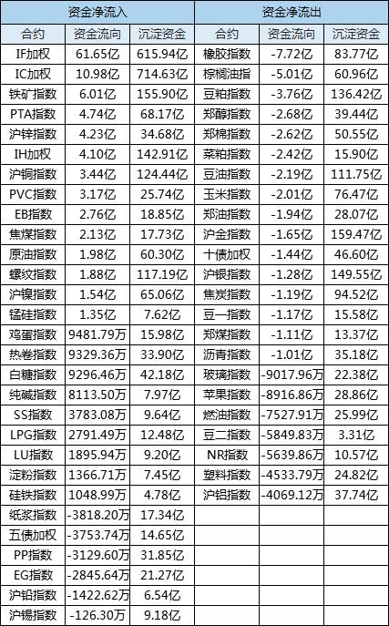 文华财经(编辑整理 宋悦)--今日资金对四大板块——黑链、有色、饲料、油脂偏好度鲜明,不过从具体品种出发,资金进出较大,还有来自化工板块的沪胶与PTA。铁矿石疯狂揽金逾6亿元,位居商品首位。其次是PTA、沪锌,均流入逾4亿元。资金流出榜前两位是沪胶、棕榈油远超其余品种。
