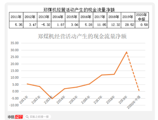 再来看郑煤机的经营活动产生的现金流净额情况,如下: