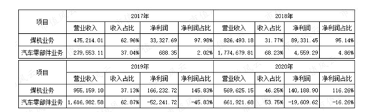 而汽车零部件业务在2019年、2020年更是出现了亏损,侵蚀了煤机业务创造的利润。