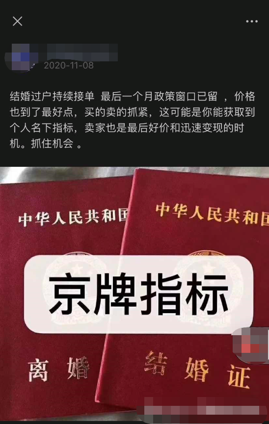 上述“暂行规定”和“实施细则”计划于2021年启动实施。这让不少寄希望通过“假结婚”获得一张京牌的人和从事该业务中介急了起来。