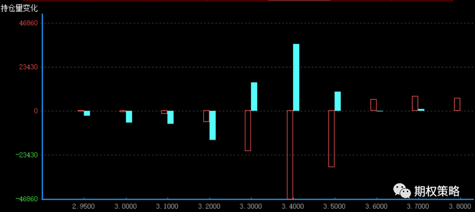 从11月持仓变化来看,平值附近认购持仓大幅减少,虚值认购持仓增幅不大,结合隐波变化来看,应该是认购义务仓主动平仓导致;而认沽在3400处大幅增仓。期权市场预期50ETF支撑上移,但追涨情况尚不严重,整体谨慎乐观、温和看涨。