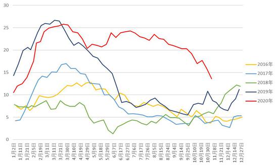 苯乙烯01合约期价自国庆假期之后就开启了飙涨模式,10月下旬经短暂调整继续走高,整体行情非常流畅。10月初至今市场主要交易苯乙烯去库存的逻辑,但10月下旬前后助推期价上行的原因有所差异。