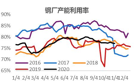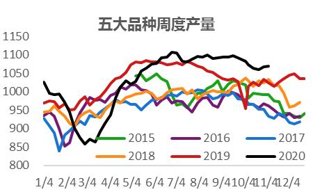 今年对于钢厂的环保限产相对前几年更为宽松,但近期限产政策的发布比较频繁,对钢厂开工造成一定影响,开工率不断走低。产量从周度数据来看总体也在走低,但仍明显高于去年同期。